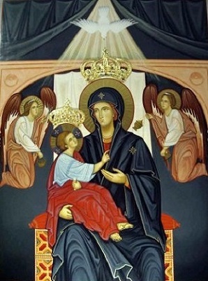 La icona mostra la Vergine seduta in trono con in braccio Gesù Bambino, ai lati due angeli e sul capo una colomba simbolo dello Spirito Santo che scende su Maria come Divino Amore. Negli ultimi anni è sorto un nuovo e ampio santuario e accanto a questo si sino moltiplicate opere caritative e assistenziali. Ogni sabato, da Pasqua a ottobre, i fedeli partono a mezzanotte dall’obelisco di Axum e percorrono circa 15 km prima sulla via Appia e poi sulla via Ardeatina e concludono il pellegrinaggio alle prime luci dell’alba con la Santa Messa celebrata nel santuario.