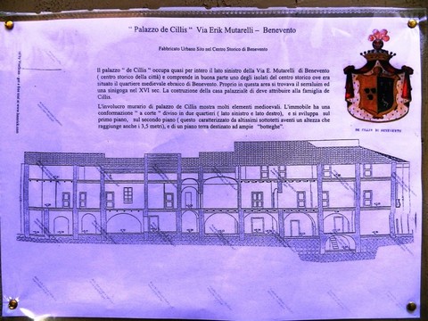 I “ciceroni”, giovani guide liceali, in questo caso accuratamente preparate dal professor Angelo Bosco, del Liceo Classico “Giannone” di Benevento, hanno introdotto i visitatori nelle varie stanze, disposte su tre piani, più un sottotetto (non visitabile), dove un tempo alloggiava la servitù, ed il piano interrato, contenente una cisterna. La famiglia De Cillis è originaria della Spagna, presente con diversi suoi rami in Puglia e in Campania, con diverse proprietà a Pago Veiano e a Montecalvo Irpino. Tra gli illustri antenati si ricorda il medico personale dell’arcivescovo Vincenzo Maria Orsini, futuro Papa Benedetto XIII. L’impianto originario risale all’XI-XIII secolo. La residenza era divisa in due parti collegate da un pontile, oggi vincolato ai sensi della legge urbanistica del 1939. Il restauro fu voluto da Mario Boscia, uno dei proprietari, che fu autorevole esponente della cultura cittadina di fine Novecento.