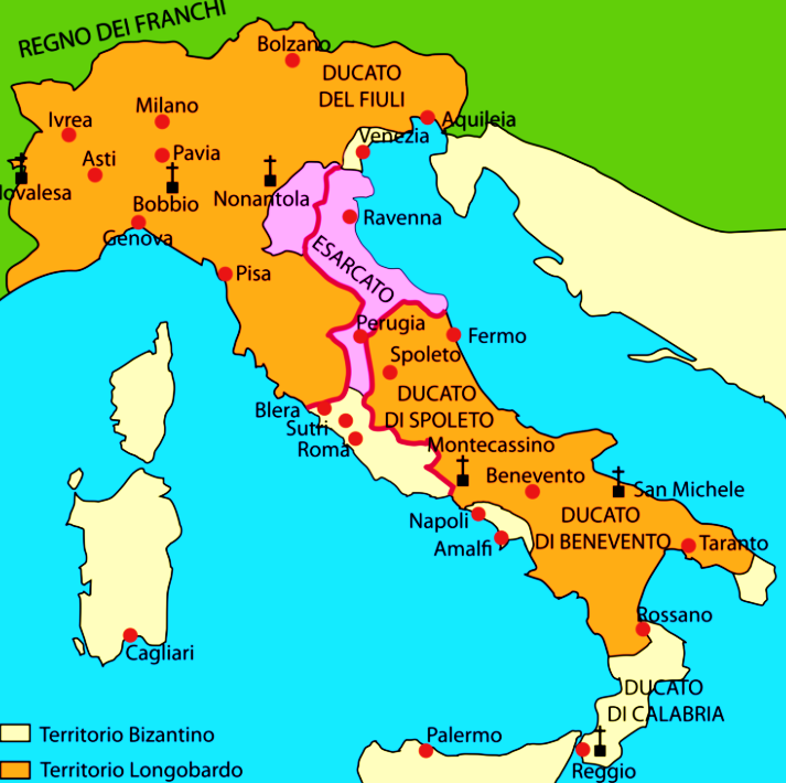 Caro Galasso, - rispose pronunciando per la prima volta il mio cognome, a conferma che mi conosceva bene - Ansa aristocratica bresciana non poteva occuparsi solo della sua città originaria. I territori sottoposti al governo dei due sovrani erano tanti, in Italia e fuori: quello della capitale Pavia e di Cividale (passando per Milano e Verona, Castelseprio, Como e Sirmione) fino a Spoleto e a Benevento, San Vincenzo al Volturno e Montecassino, dalla Venezia alla Tuscia, alla Campania, non dimenticando i grandi spazi contigui o quelli più lontani dell’Italia bizantina, con Ravenna da un lato, e in particolare la Rezia dall’altro al di là delle Alpi (Fig. 3). Mi sorprende che a Benevento la regina Ansa sia ignorata, considerata una donna qualsiasi impegnata soltanto nel privato. Pensa alla prosperità economica e culturale del regno longobardo. Le monete a cui ho accennato prima erano strumenti politici ed economici di un regno in cui circolava l’oro quando i Carolingi erano ancora ristretti a una monetazione d’argento. La regina Ansa gestiva strategicamente quei valori, era una conduttrice energica, molto più decisionista del marito. Hai sentito bene, decisionista! Le fonti d’epoca concordano nel mostrarla la figura più influente nella corte longobarda nell’VIII secolo. Non era una semplice first lady vestita alla moda, interveniva nelle decisioni di interessi religiosi e territoriali. Una madre politica, appunto.