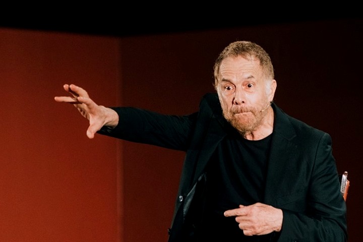 L’attore non legge i versi dell’immenso poeta, né tantomeno interpreta, tuttavia con uno stile personale propone al pubblico attento ed in religioso silenzio, una riflessione filosofica-letteraria, un’autentica sfida alla modernità, immersa nella futilità esistenziale, che rischia di ottenebrare le menti.