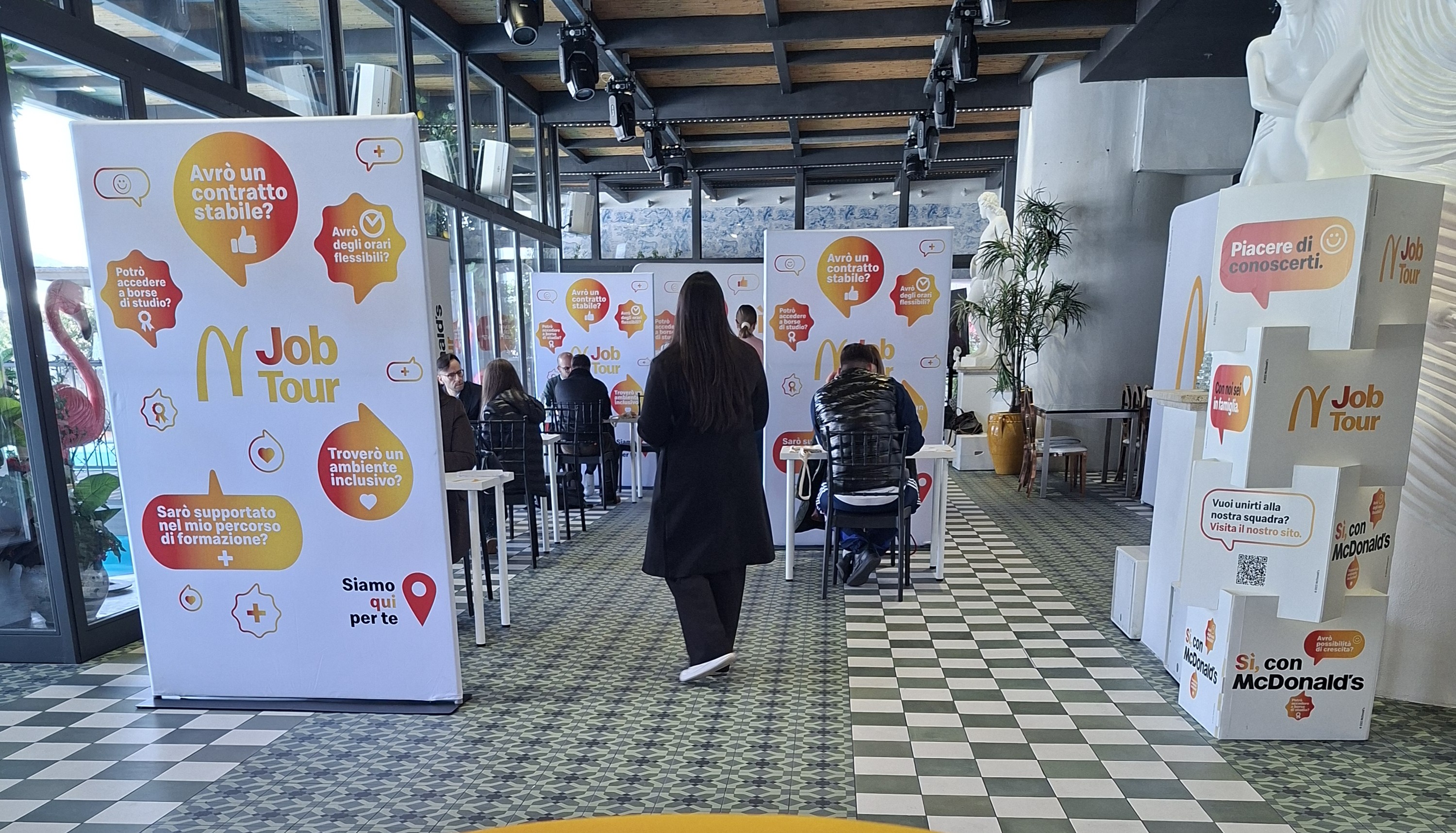 La tappa del Job Tour ha dato il via al percorso di ricerca e selezione del personale per entrare a far parte del team del ristorante McDonald’s di prossima apertura a Montesarchio, che si aggiungerà agli altri 2 ristoranti già presenti in provincia di Benevento. Durante la giornata, i primi oltre 90 candidati hanno avuto la possibilità di sostenere un colloquio individuale e di incontrare e confrontarsi con i dipendenti di altri ristoranti.