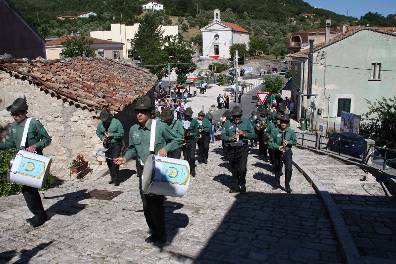 Poi, la sfilata per le vie del paese con i gonfaloni dei Comuni limitrofi, delle associazioni d’Arma, della Croce Rossa, delle Protezioni Civili, della locale banda con cappello alpino perché affiliata alla Sezione ANA di Napoli ed infine, a seguire, i vessilli delle Sezioni ANA di Novara, Marche, Latina, Abruzzi, Molise, Puglia e Napoli con tanti gagliardetti dei gruppi partecipanti e gli alpini con il loro particolare cappello con la penna nera.