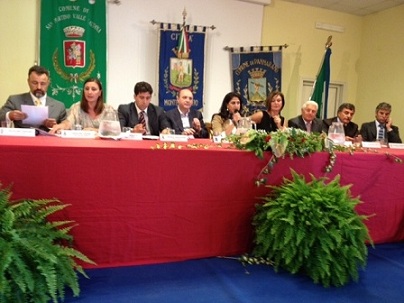Nella foto i sindaci della Valle Caudina riuniti a Montesarchio nella sala del Consiglio comunale. Al centro il sindaco Izzo e la presidente dell'Associazione Marcella Sorrentino