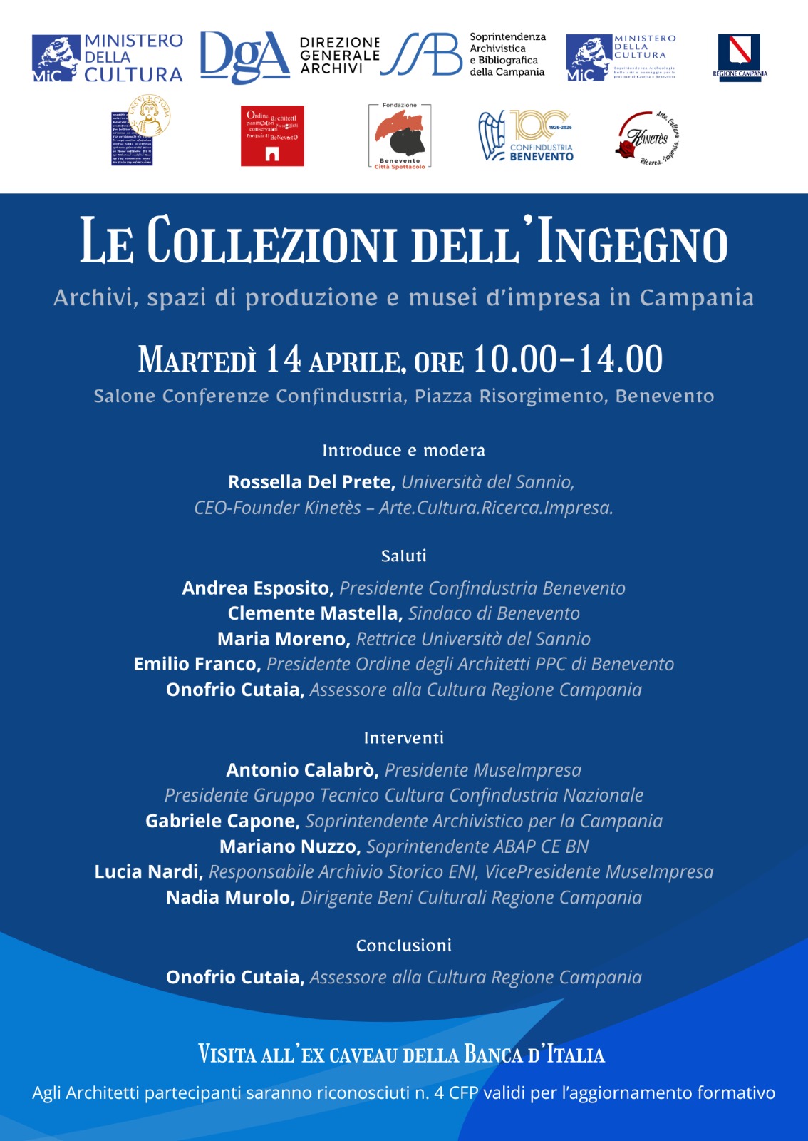 LE COLLEZIONI DELL’INGEGNO- Archivi, spazi produttivi e musei d’impresa. CONFINDUSTRIA Benevento, Martedì 14 aprile 2026, ore 10,00 Eventi