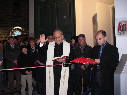 Dopo la benedizione di rito impartita da Mons. Pompilio Cristino ed il taglio del nastro eseguito insieme al Maestro presepista Francesco Salvati, una folla straripante di uomini, donne e bambini ha letteralmente e gioiosamente invaso l'enorme sala per ammirare i quaranta e passa presepi che con cura certosina hanno realizzato soci e non nell'arco di svariati mesi.