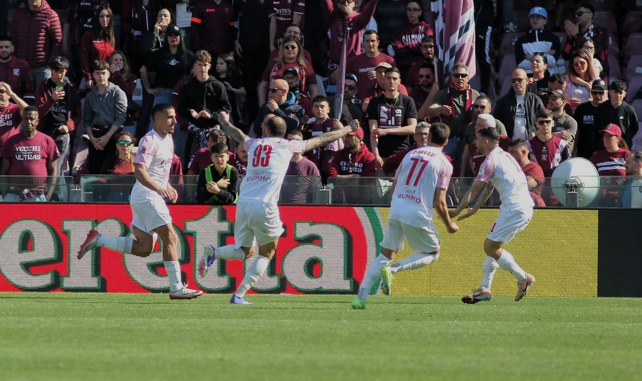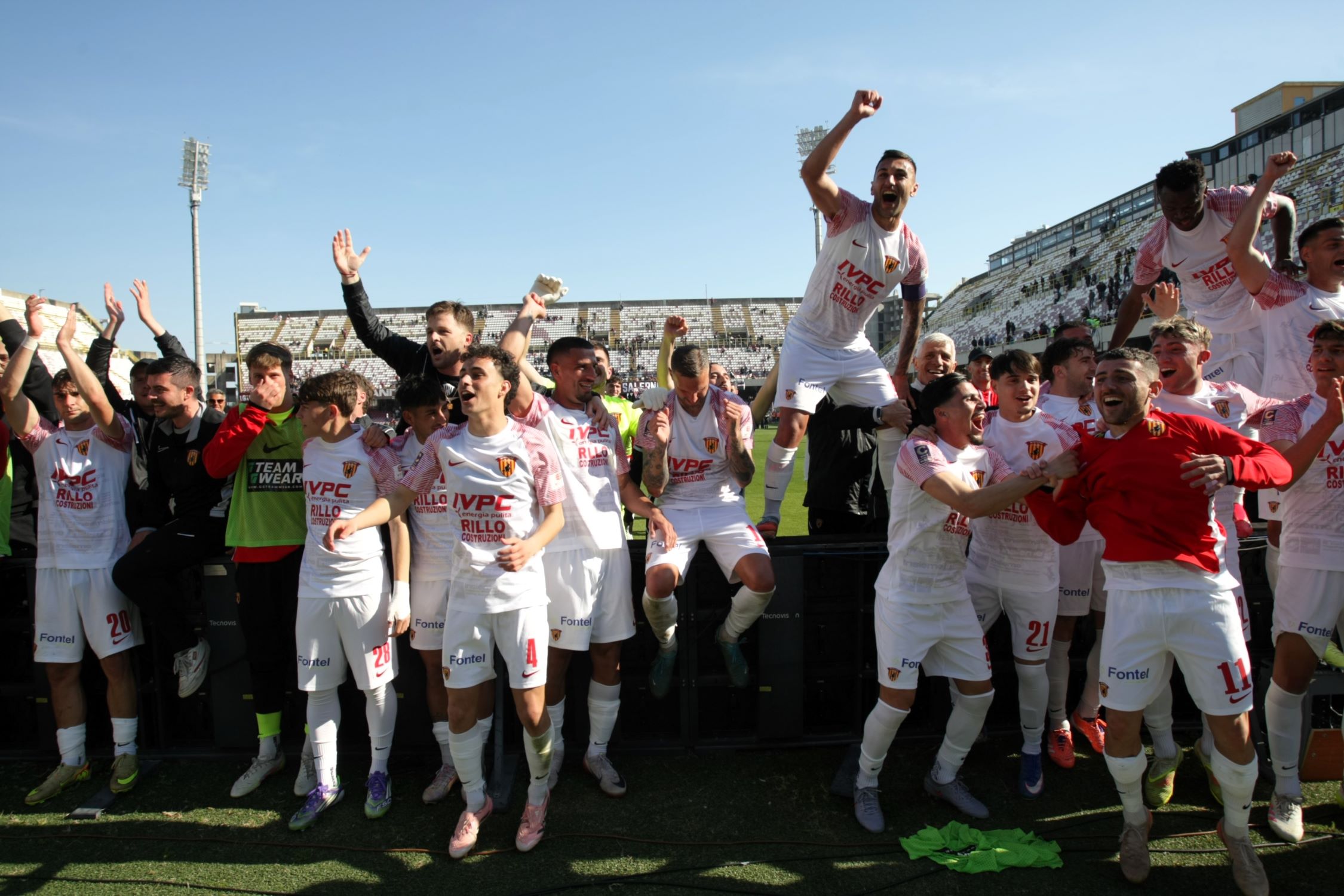 Espugnando l’‘Arechi’ di Salerno con merito ed apprendendo in contemporanea la notizia tanto decisiva quanto inattesa - il k.o. del Catania - la Strega si è guadagnata la matematica promozione in serie cadetta. Urla, lacrime di gioia, abbracci a cuore aperto; il pubblico di casa, ammutolitosi, ha lasciato cantare e sfogare i giallorossi giunti a Salerno nel giorno di Pasquetta.