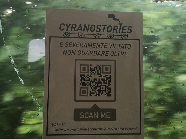 Innovativo e impeccabile il lavoro della CyranoStories CNA hub 4.0, dei giovani e talentuosi Diego Rossi, Marina Nardone e Mario Damiano. “Componiamo itinerari narrativi, creiamo storie, e raccontiamo le aziende”. Sui finestrini del treno sono state, infatti, applicate delle vetrofanie con un Qr Code. E’ bastato inquadrarlo con la fotocamera dello smartphone per essere reindirizzati al sito: www.cyranostories.com, sezione Sannio Express.