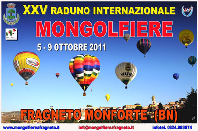Manca poco più di una settimana all’inaugurazione della XXVesima edizione del Raduno Internazionale delle Mongolfiere di Fragneto Monforte (Bn), che si terrà dal 5 al 9 ottobre nell’amena cittadina sannita. Ormai è quasi tutto pronto per accogliere i turisti e gli ospiti che giungeranno per questo importante appuntamento: un vero e proprio grande-evento in terra sannita.