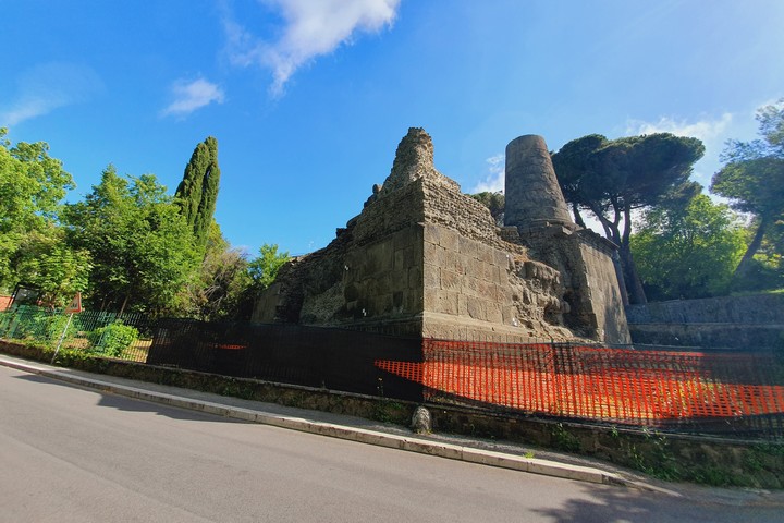Parto da Roma in mattinata per dirigermi dal Colosseo verso Porta San Sebastiamo, una gigantesca porta con le sue maestose mura aureliane, che fanno capire che entrare a Roma era una cosa seria… Usciti dalla porta il mondo romano sembra allungarsi nel tempo come la sua strada regina, l’Appia Antica, la prima strada articolata con marciapiedi e spazio per senso di marcia. Ma la sua vera peculiarità sono le tombe romane, i mausolei e le statue: tutto ciò che si utilizzava come decoro, direi maestoso, ma tristemente funerario, che i Romani, rispetto ai nostri tempi, preferivano per offrire riposo eterno ai cari defunti. La strada Regina, dunque, era maestosa anche per la quantità di tombe sfarzose che ne decoravano i bordi. Quasi come se la strada fosse un decumano massimo infinito. Un paesaggio che ti incanta per così tanta antichità sparsa lungo il percorso. È come se nel museo più grande del mondo decidessero di mettere ogni monumento, ogni statua, ogni referto lungo quella strada. Ed è proprio questo: l’Appia è un museo a cielo aperto nel quale, per i primi 20 km, ad ogni angolo c’è qualcosa di antico: da piccole tombe piccole a statue meravigliose e mausolei ciclopici come la tomba di Cecilia Metela.