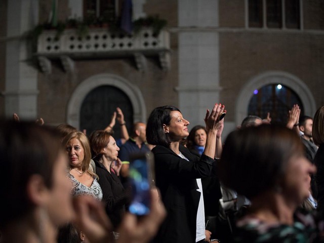 Il pubblico all’interno di Piazza Castello e fuori dalle transenne ha assistito ad un concerto irripetibile, ha cantato con Fiorella Mannoia famosi ritornelli di pezzi che hanno attraversato il tempo, segnando uno spaccato della realtà, intrisa di modelli culturali diversi e distanti dal concetto di umanità.