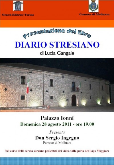 E' programmata per domenica 28 agosto, alle ore 19.00, nell'antico Palazzo Ionni di Molinara, la presentazione del libro “Diario stresiano”, nuovissimo lavoro della scrittrice, nonchè docente di Storia e Filosofia presso il Liceo Classico “Rosario Livatino” di San Marco dei Cavoti, Lucia Gangale.