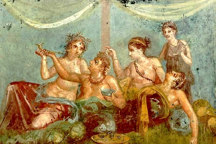Mi è rimasta impressa nella memoria la bellissima casa dei Vettii. Ricordo che il custode chiese a mio nonno di allontanarci dal posto in cui stavamo. E mentre ci diceva queste cose con l’indice indicava me. Mentre seguivamo le direttive del guardiano sentivo che chiedeva categorico alle donne presenti se erano sposate. Chi rispondeva “no” era subito allontanata. Dopo questa operazione di “selezione” sbirciai la porticina che aprì all’ammirazione degli astanti. Allora non sapevo che la figura che apparve dietro lo sportellino, che il custode non mollò per un attimo pronto a richiuderlo, era Priapo intento a confrontare su di una bilancia il peso del suo enorme fallo con un bel gruzzolo di denari.