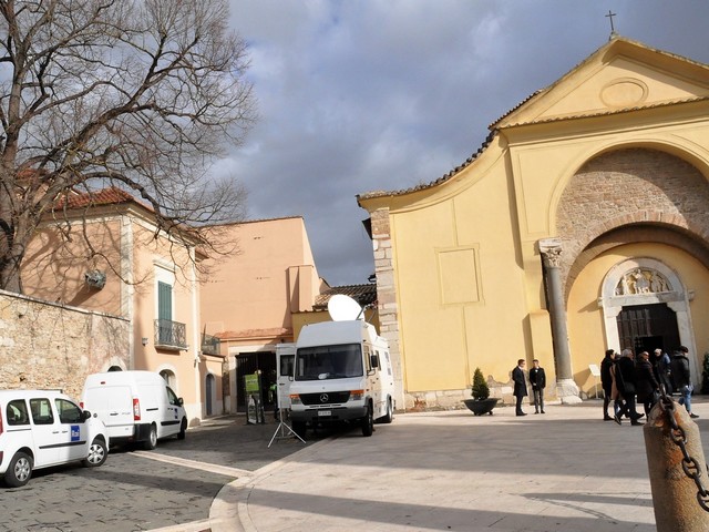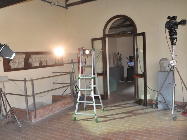 In realtà lo studio televisivo avrebbe dovuto essere installato proprio nel Chiostro del Museo, ma le condizioni meteo avverse di queste ore hanno indotto i tecnici al trasferimento presso una Sala chiusa della Loggia.