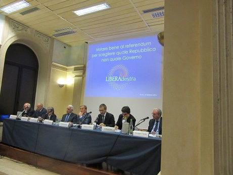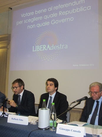 Al Centro Congressi di Via Cavour hanno relazionato su un tema di grandissima attualità quale è il prossimo referendum sulla riforma costituzionale che si svolgerà ad ottobre:l’ex ministro Brunetta di Forza Italia; l’on. Fitto dei Conservatori Italiani; l’on Rampelli di Fratelli d’Italia ed i docenti universitari Antonio Baldassarre e Alfonso Celotto