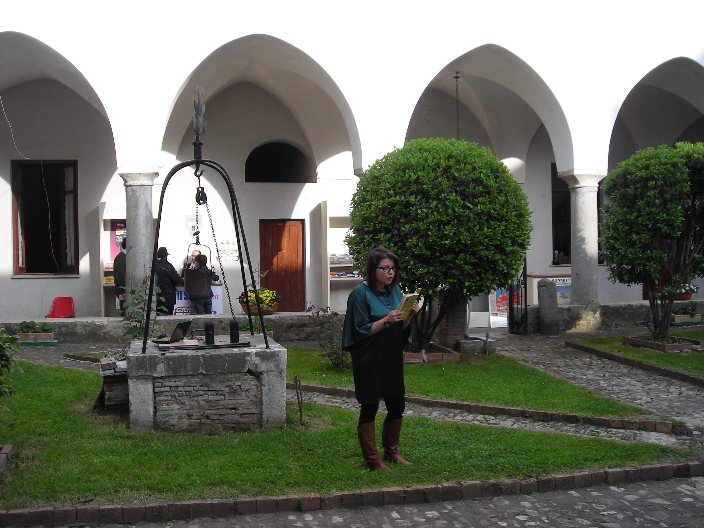 Nel bellissimo, e ai più sconosciuto, Chiostro di S. Francesco a Piazza Dogana furono installati degli eleganti stands ed esposta la ricca produzione libraria sannita.