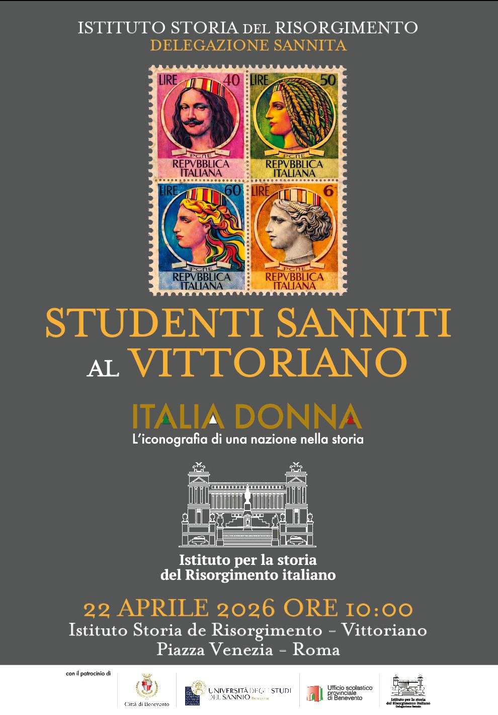 «Abbiamo voluto dare continuità alla mostra “Italia Donna – l’iconografia di una nazione nella storia”, coinvolgendo direttamente studenti e studentesse in un percorso di rilettura contemporanea – ha dichiarato il Direttore dell’ISRI Sannita, Luigi Razzano –. La qualità e la profondità degli elaborati presentati dimostrano una grande capacità di interpretare, con linguaggi diversi, il ruolo della figura femminile nella costruzione dell’identità nazionale. Un sentito ringraziamento va all’Istituto Nazionale e al Direttore, prof. Alessandro Campi, per aver accolto a Roma, presso il Vittoriano, sia le opere sia i giovani partecipanti».