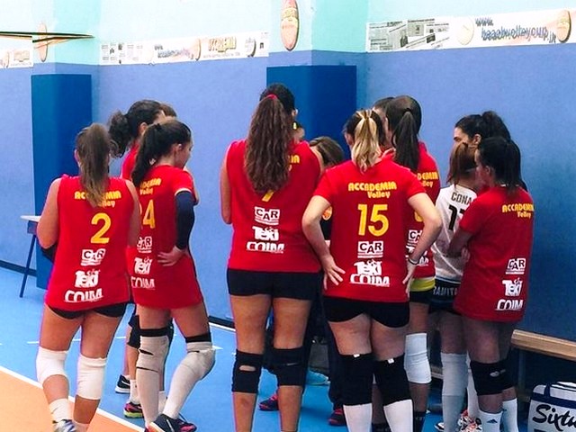 Accademia Volley: Varricchio, Iannelli 2, Principe 9, Ricciardi 3, De Cristofaro 5, Di Bacco ne, Guerriero 2, Cona (L1), Tufo (L2) ne, Verdino ne, Pericolo ne, Pescatore 1. All. E. Capone. Vice All. A. Cioffi.