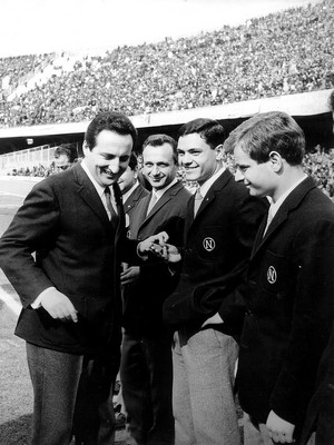 Nella foto di apertura Gino Miele al Torneo di Viareggio del 1966. Nella prima foto in basso, da sinistra, il presidente del Napoli Roberto Fiore, Egidio Di Costanzo (allenatore in 2ª al tempo di Pesaola) e i giocatori premiati al Torneo di Viareggio del '66 Tripodi e Miele. Nell'ultima foto, invece, Miele (terzo da sx) nello staff tecnico della Nazionale italiana under 20 del 1999.