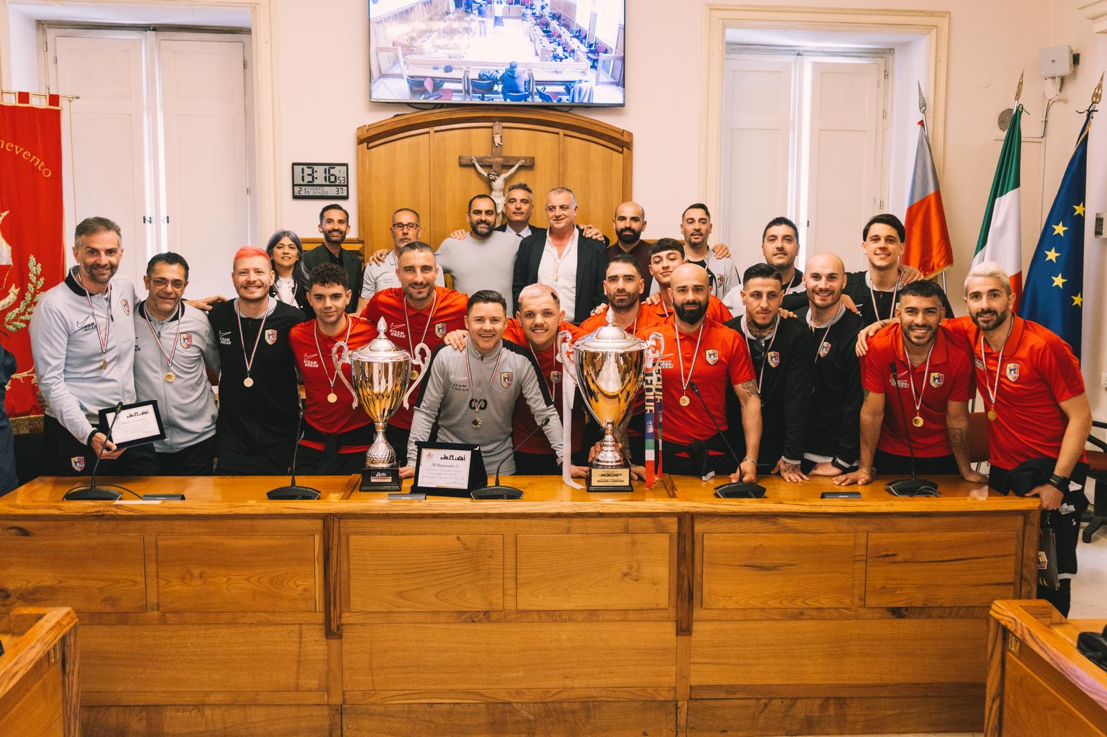 “Ringrazio il sindaco Clemente Mastella, l’assessore allo sport Enzo Lauro, l’assessore alle politiche sociali Carmen Coppola e l’intera Giunta Comunale per averci accolto in Comune e per aver voluto premiare il Benevento 5 in occasione della vittoria del Campionato e della Coppa Italia. Un gesto che valorizza il nostro lavoro, la nostra città e il percorso straordinario che tutti insieme stiamo costruendo”, le parole del presidente Pellegrino Di Fede a margine dell’evento.