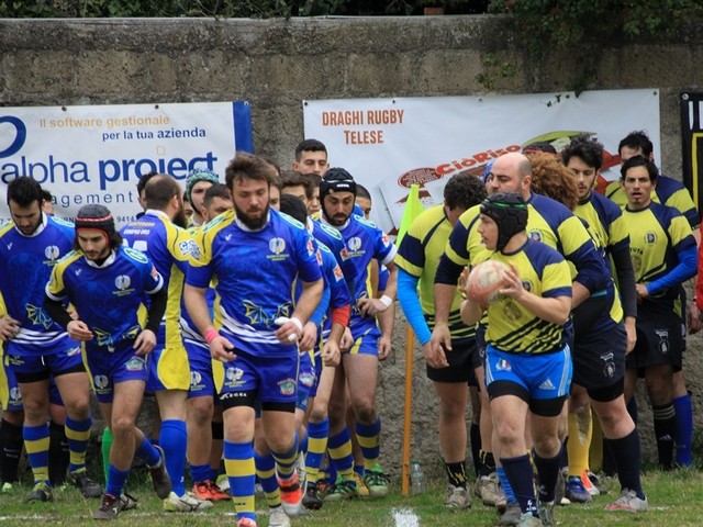 Si è trattato del primo incontro casalingo che, in seguito all’inizio dei lavori sul campo di via Compagna, si è svolto in provincia. Gli incontri si svolgeranno infatti sui campi di società cittadine e della provincia che daranno disponibilità ad ospitare le gare e per la partita odierna è stata la Società Draghi Telese Rugby ad aver generosamente dato ospitalità ai gialloblu.